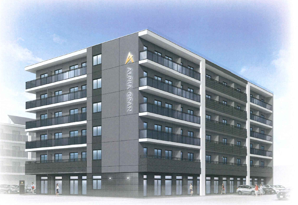駅前通りに面した、地上6階建てRC造の新築物件です。