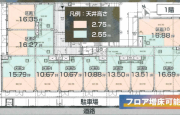 1階路面が医療含むテナント賃借エリア、上層階が賃借住戸エリアで、1階路面部分の募集となります。